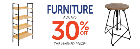 Hobby LobbyHurry in and save! Shop in store and get 30% off furniture always.